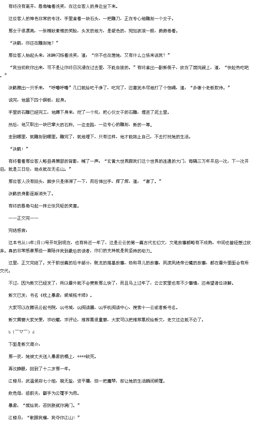 > 大结局+新文《枕上暴君:倾城铭术师》