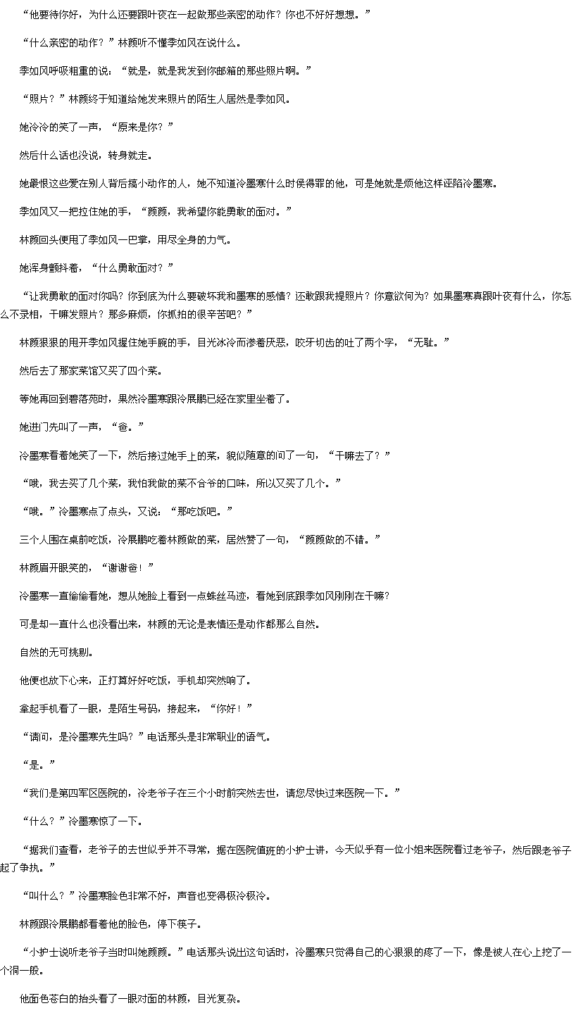 > 医院终于给冷墨寒下了通知