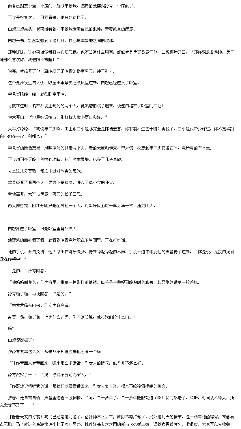 第945章 冷霄深沉的爱,帝少吃醋!